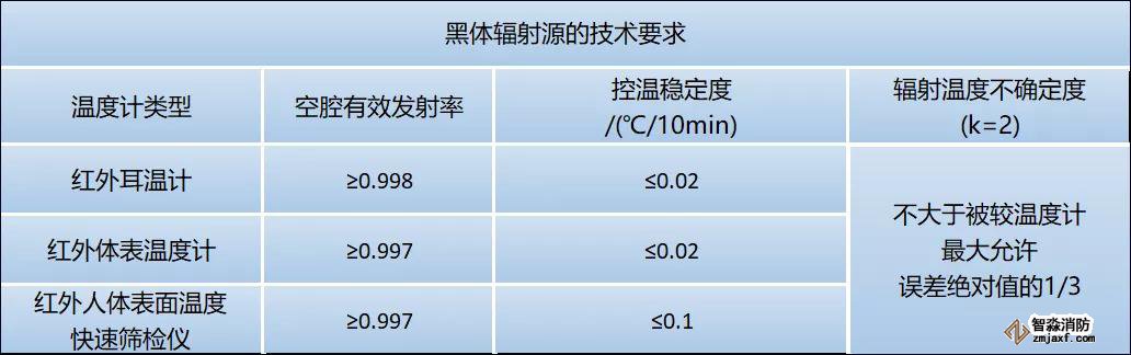 紅外額溫計和其他各種用于人體表面溫度快速篩檢的儀器則可以參照《測量人體溫度的紅外溫度計校準規(guī)范》,其中對溫度源的技術(shù)要求為: